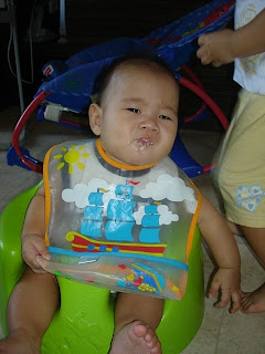 At 11 plus, Celeste finally quietened down when its time for Lunch. The Principal fed her lunch and after 2 spoons, she was just too tired and fell asleep before Popo could pick her up. She woke up and didn't continue to cry, and Popo brought her home.. Popo bought her 2 pieces of cake and she finished them up. Guess the poor gal was real hungry. I hope she will be better off in school tomorrow.. Its another day before the weekend break.